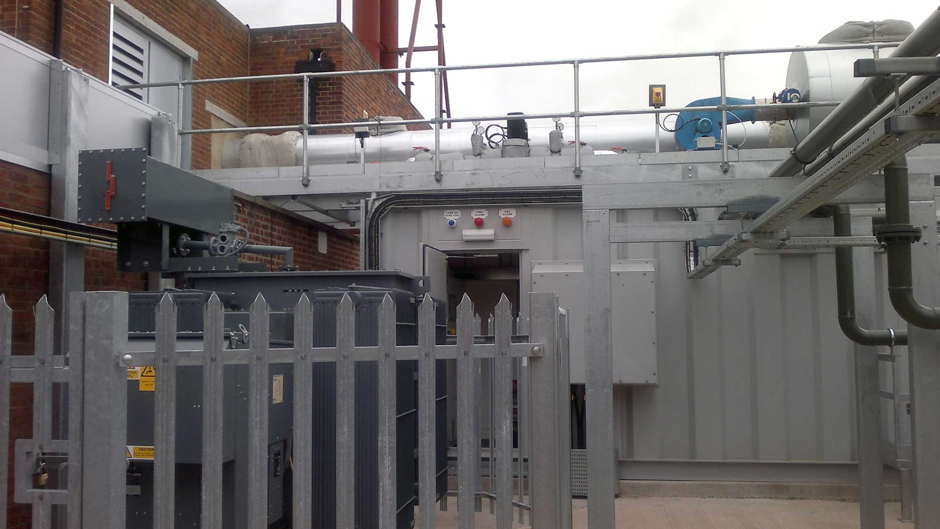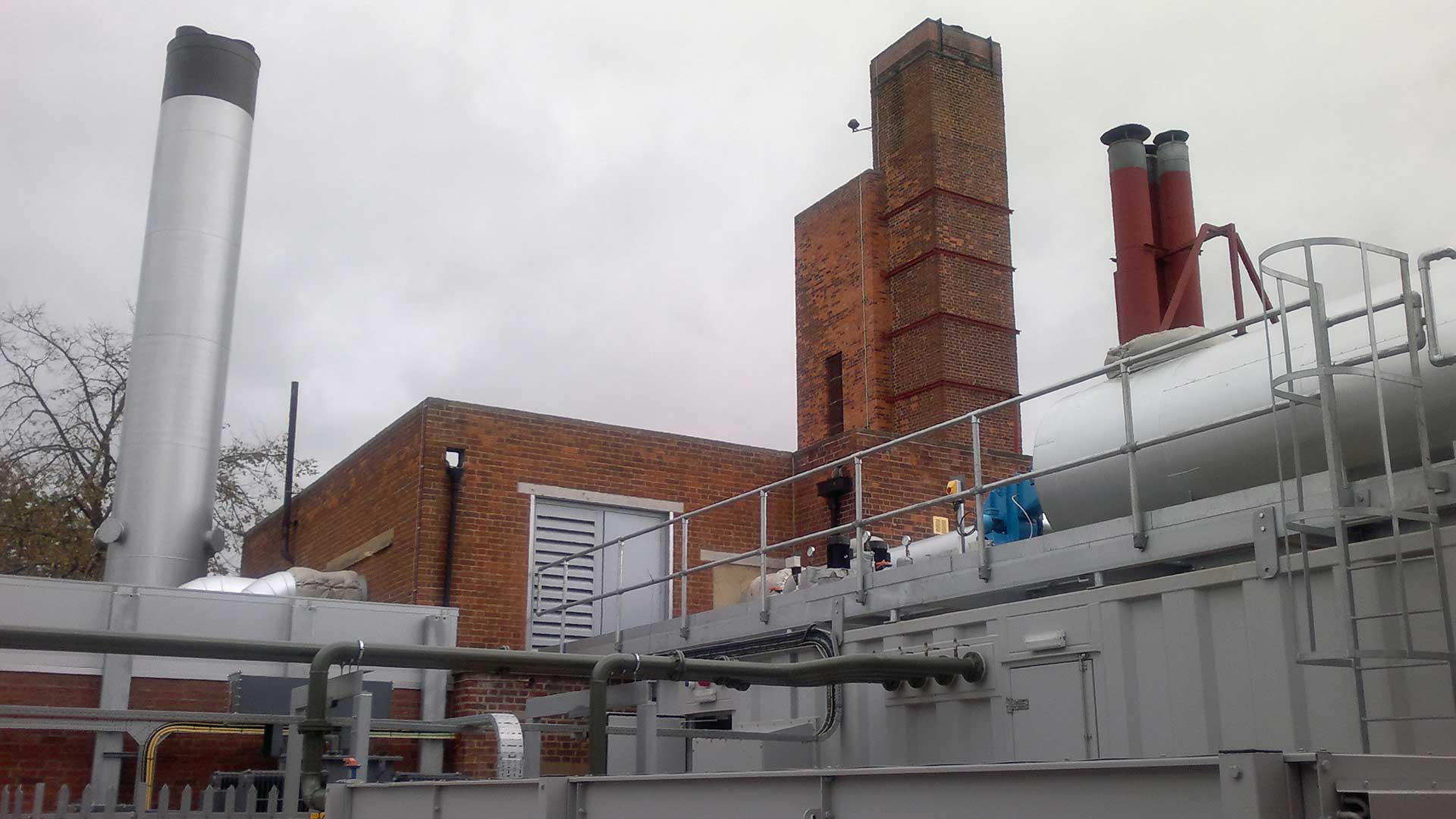 Careful consideration had to be given to the stringent noise levels imposed by the University. The CHP unit was to be sited outside the existing boiler house, adjacent to a Laboratory Building which needed to be protected from noise and any associated vibrations. The final solution was to provide the unit in a weather proofed anti-vibration enclosure with a certified noise emission of 60dBa/1m. Further significant consideration had to be given that the installation was being executed within a “live” site with the unit being located near the main road within the campus and with a fully operational airfield located to the rear.