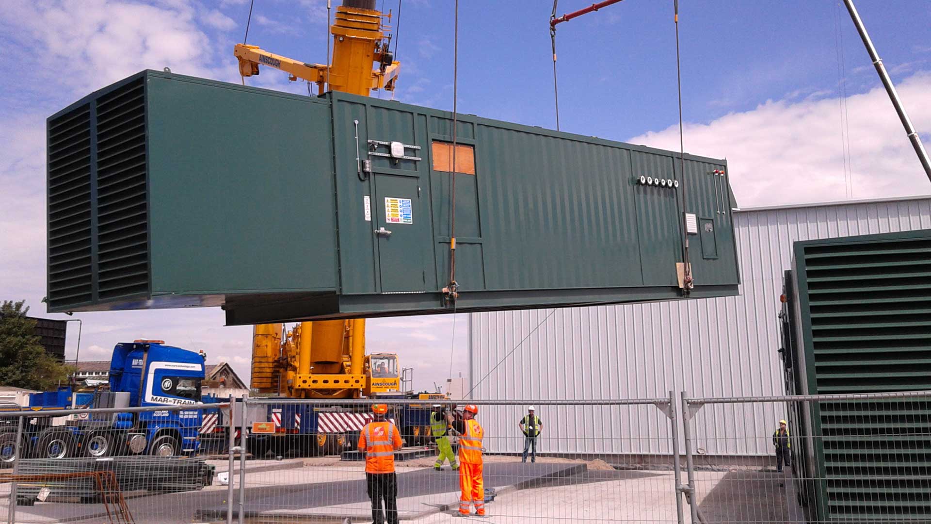The gensets were containerised within acoustic attenuated enclosures at Edina’s manufacturing facility based in Lisburn, Northern Ireland and included all ancillary equipment which was assembled and tested at Edina’s factory, reducing site installation time and project cost.
