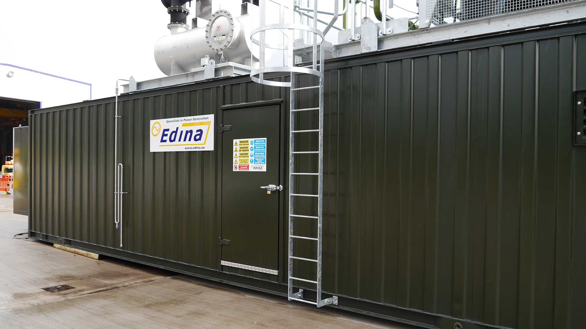 As the official distributor for MWM gas engines in the UK and Ireland, Edina was successful in securing an MWM TCG 2020 V12 engine from the factory on a short lead time and set in place an ambitious build schedule. The unit selected consisted of a 1000kWe lean burn Miller Cycle gas generator set, containerised with all ancillary systems packaged inside the enclosure. The unit generates at 400 volts and steps up to 20kV via a local transformer, also supplied by Edina. This provided the optimum solution for a short delivery and installation time together with an easily serviceable and safe installation.